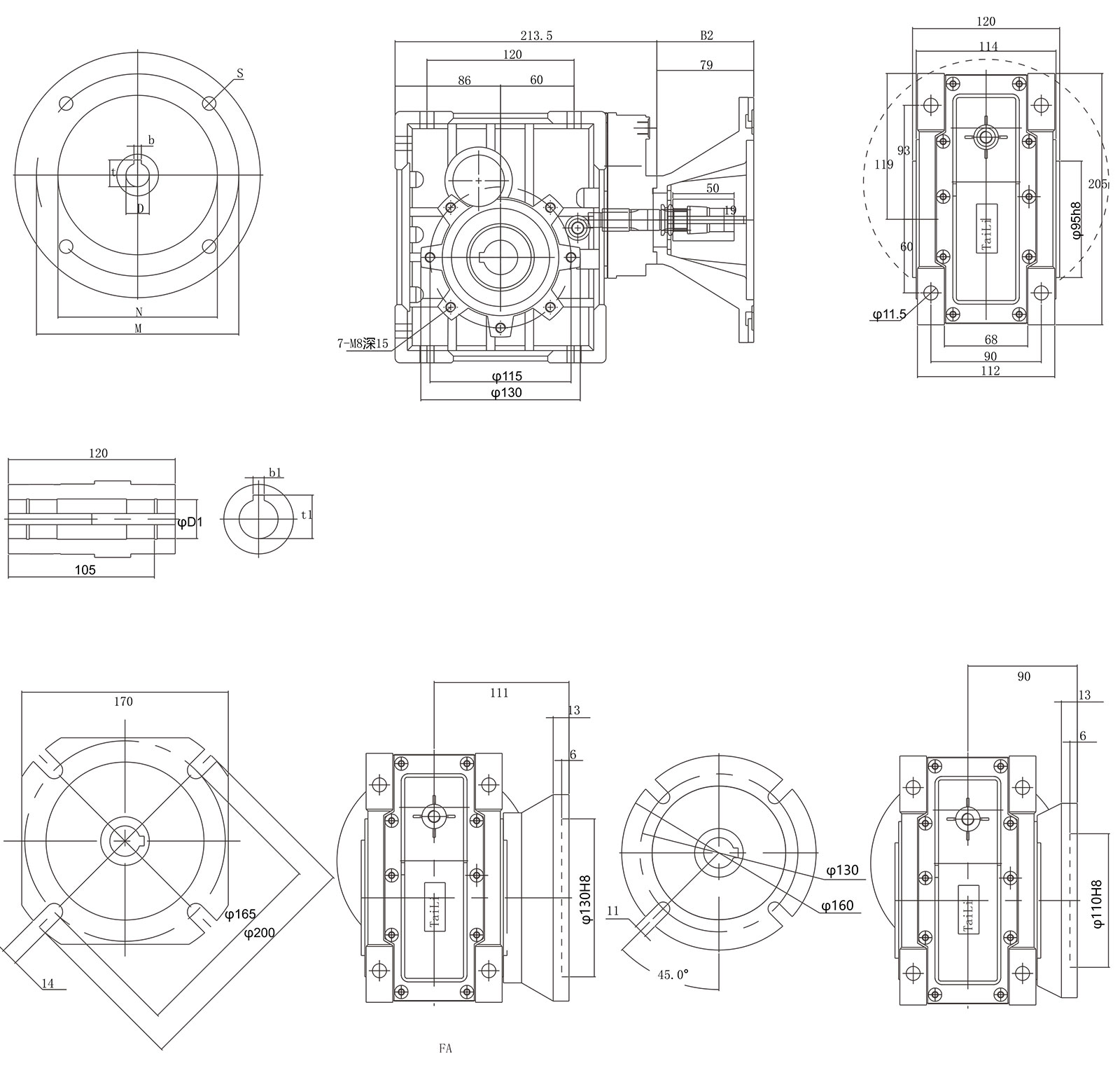 TKM系列減速 器安裝尺寸與TNRV系列渦輪蝸桿減速器完全兼容( TKM28與TNRV050部分尺寸不同) ;