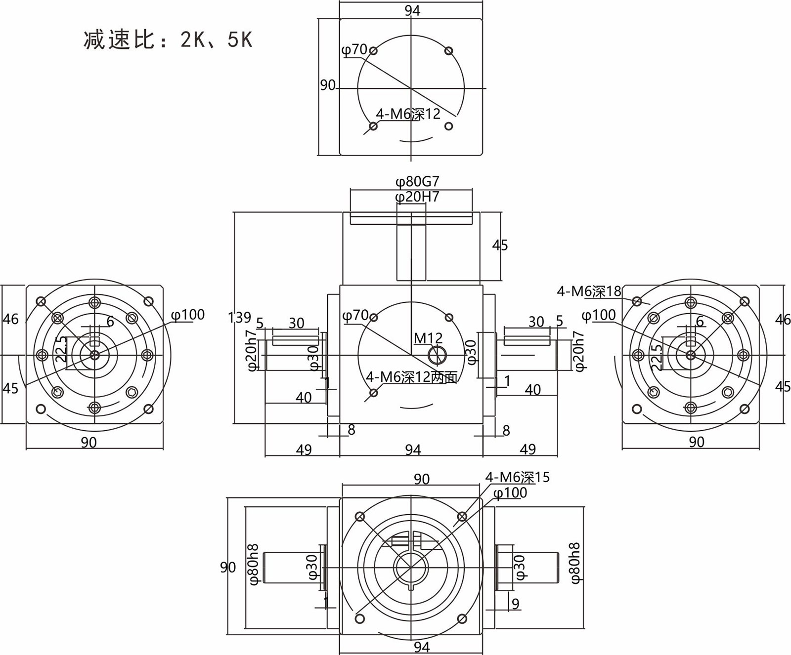 精密直角轉(zhuǎn)向器單實(shí)心出軸型