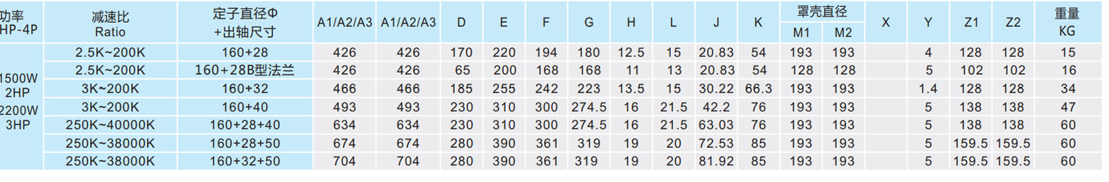 ▲ 表列轉(zhuǎn)速是基于電機異步轉(zhuǎn)速(50Hz:1400r/min、60Hz:1680r/min),額定負載時,實際轉(zhuǎn)速為表列轉(zhuǎn)速的80%-98%。