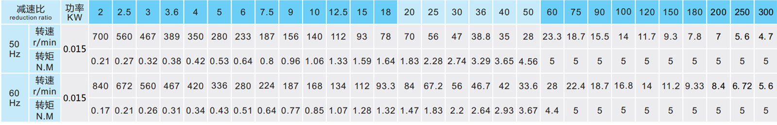 轉(zhuǎn)速是以電動(dòng)機(jī)的異步轉(zhuǎn)速(50Hz:1400r/min、60Hz:1680r/min)為基準(zhǔn)除以減速比而算 出來的數(shù)值。實(shí)際轉(zhuǎn)速將隨負(fù)載大小變化而有所變化。