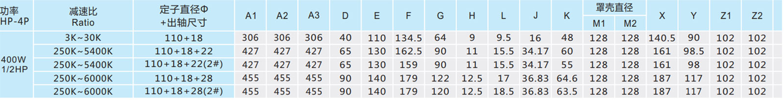 ▲ 表列轉(zhuǎn)速是基于電機異步轉(zhuǎn)速(50Hz:1400r/min、60Hz:1680r/min),額定負載時,實際轉(zhuǎn)速為表列轉(zhuǎn)速的80%-98%。