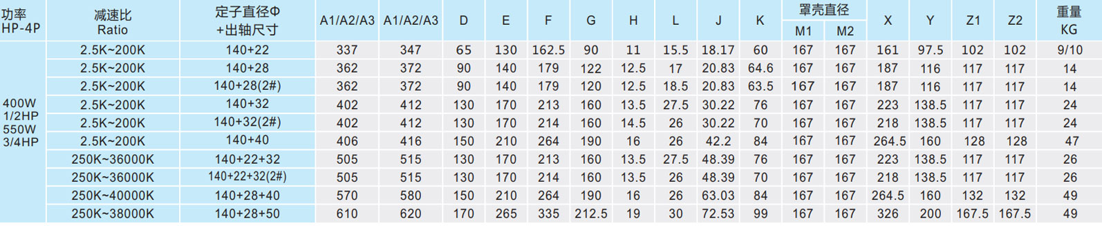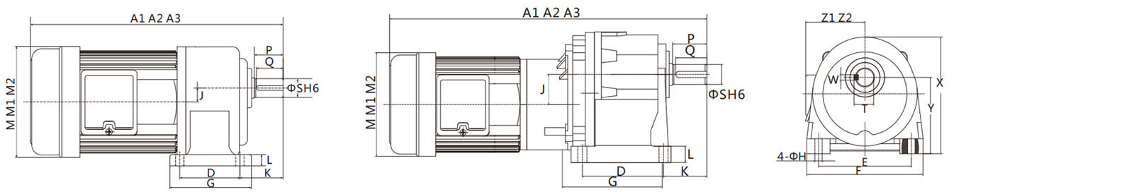 A2、M2、Z2為單相馬達(dá)尺寸。