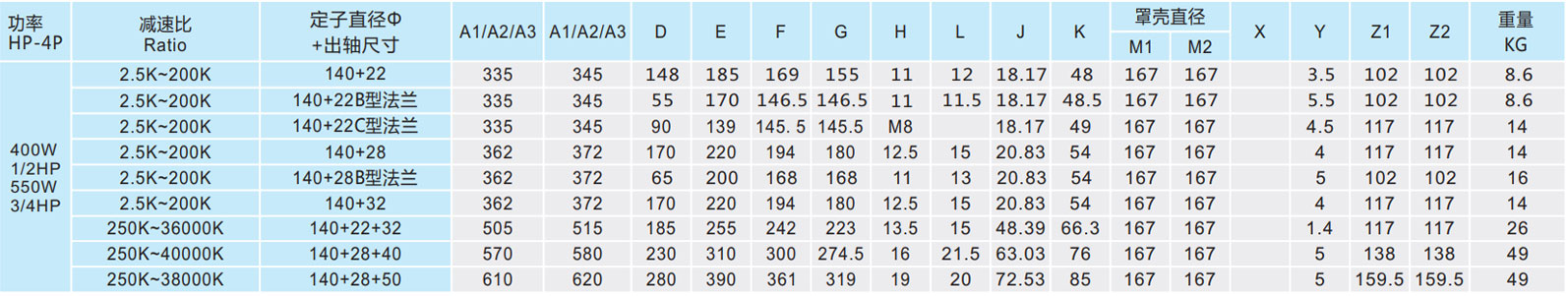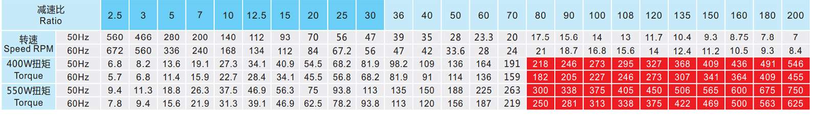 ▲ 表列轉(zhuǎn)速是基于電機異步轉(zhuǎn)速(50Hz:1400r/min、60Hz:1680r/min),額定負(fù)載時,實際轉(zhuǎn)速為表列轉(zhuǎn)速的80%-98%。