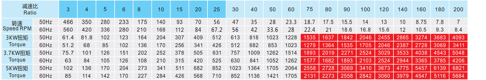 ▲ 表列轉(zhuǎn)速是基于電機異步轉(zhuǎn)速(50Hz:1400r/min、60Hz:1680r/min),額定負(fù)載時,實際轉(zhuǎn)速為表列轉(zhuǎn)速的80%-98%。