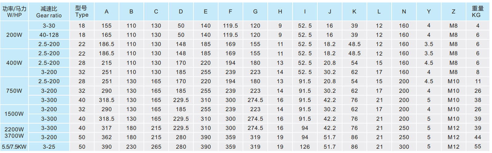 ▲ 表列轉(zhuǎn)速是基于電機(jī)異步轉(zhuǎn)速(50Hz:1400r/min、60Hz:1680r/min),額定負(fù)載時(shí),實(shí)際轉(zhuǎn)速為表列轉(zhuǎn)速的80%-98%。